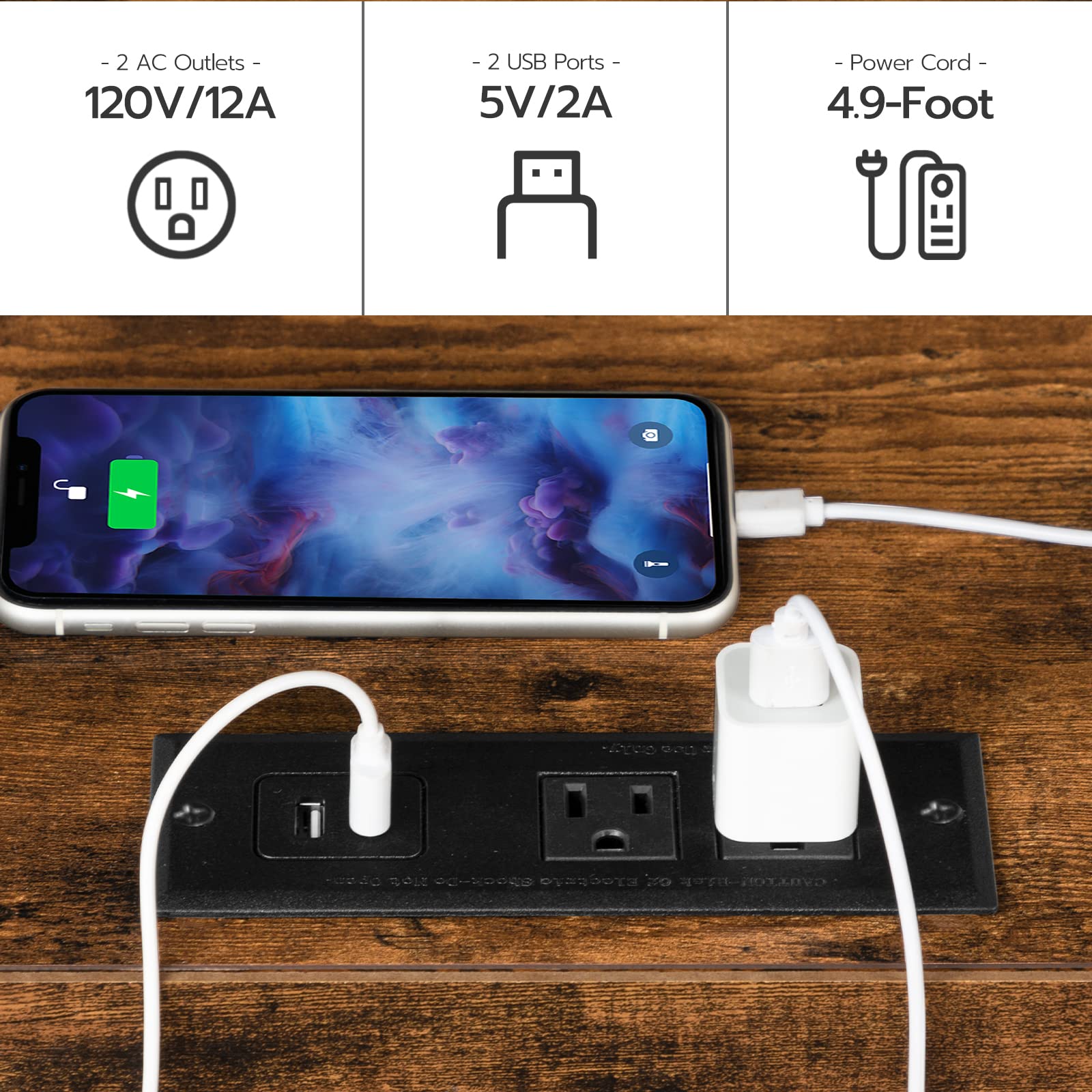 • End Table with Charging Station, Bedside Table with 2 Drawer & USB Ports & Power Outlets7