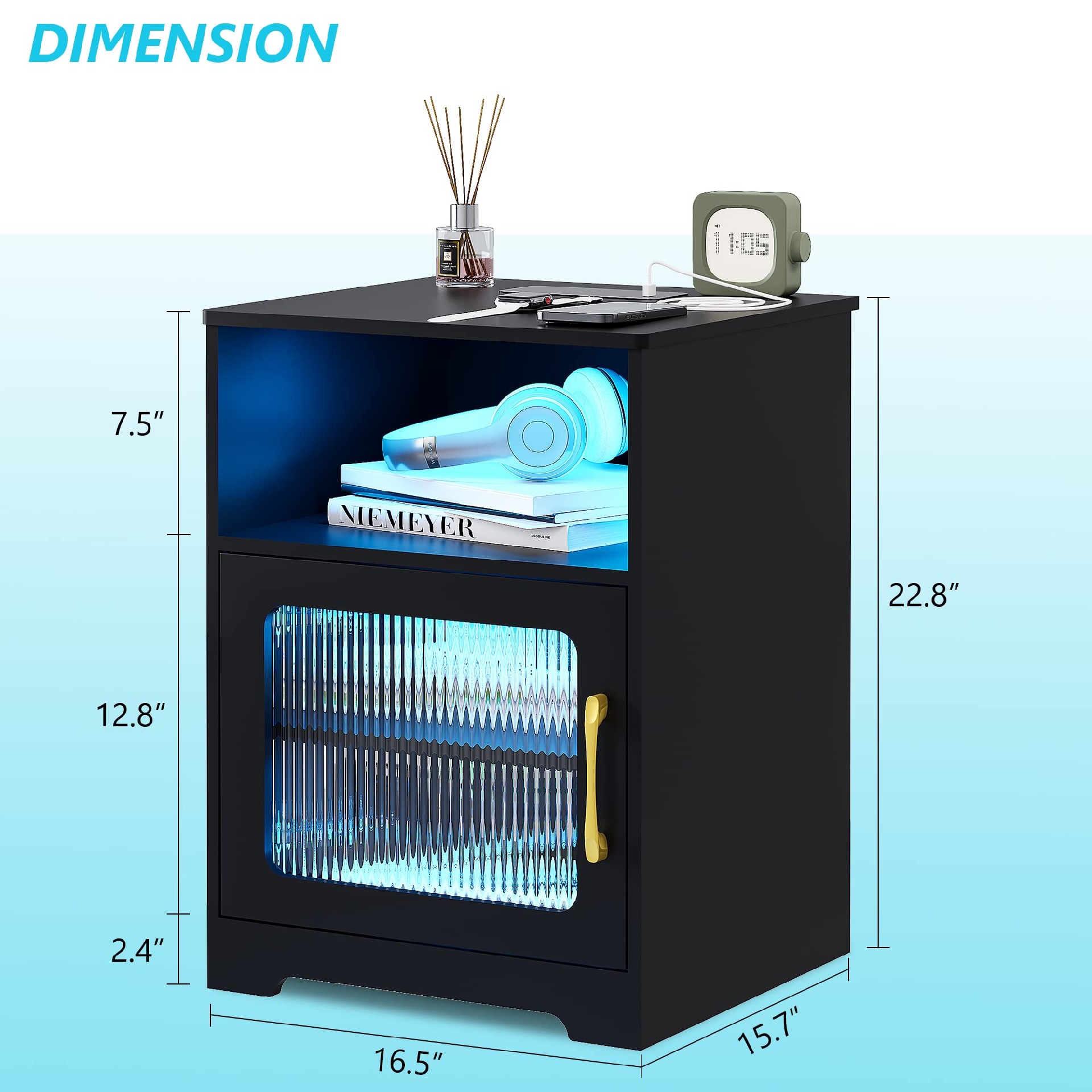 • LED Nightstand with Charging Station, Smart Night Stand with Wirelss/USB/Type-C, Bedside Table with Body Sensing Lights (Black)[pics:i]
